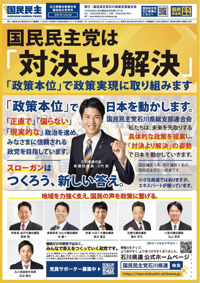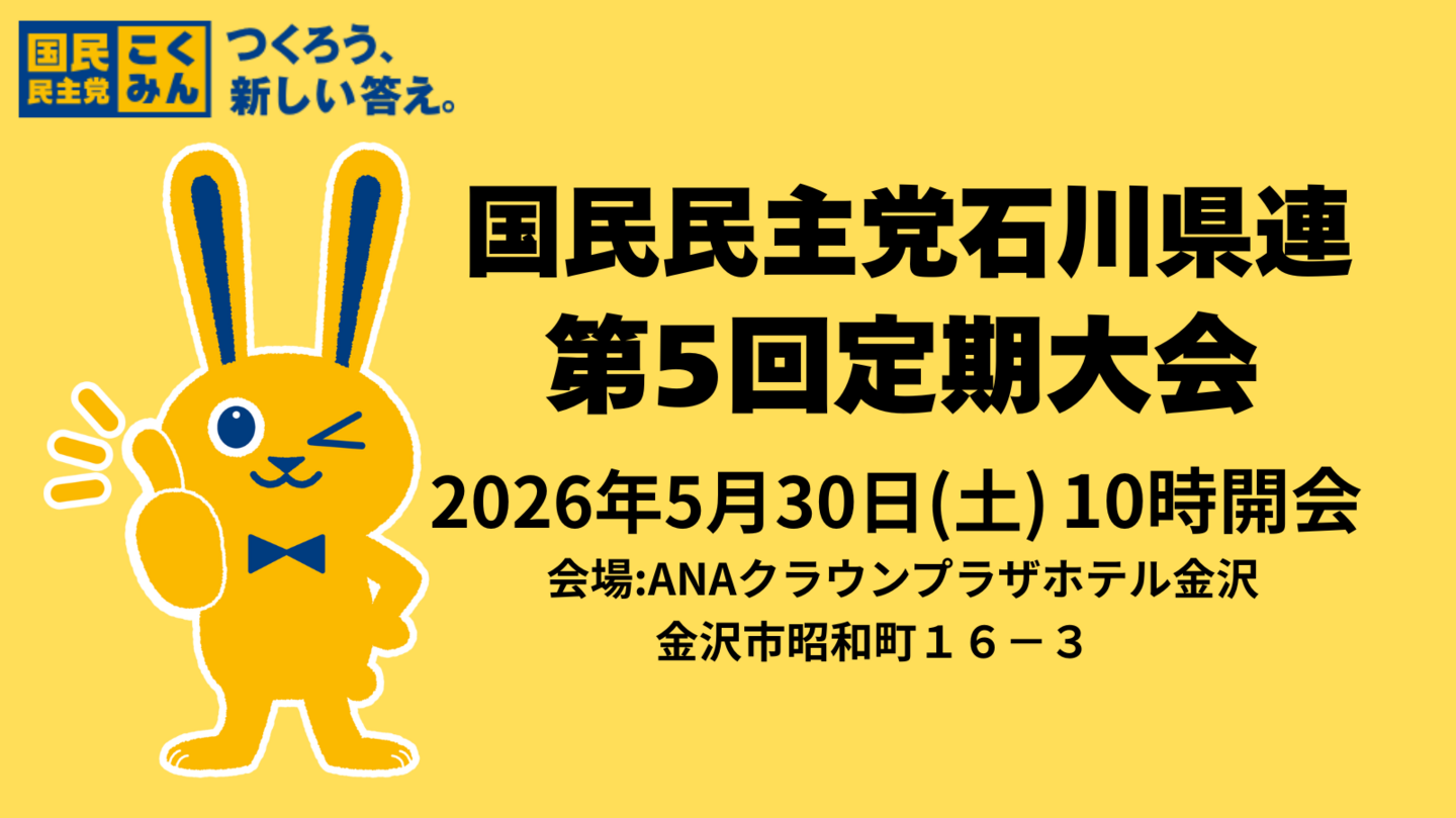 旧年中は、国民民主党石川県連の活動に対し、温かいご理解と力強いご支援を賜り、心より御礼申し上げます。