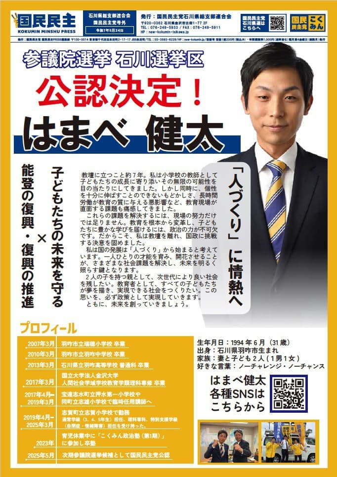 加賀市に福永哲也加賀市議会議員。七尾市に丸山英邦七尾市議会議員。