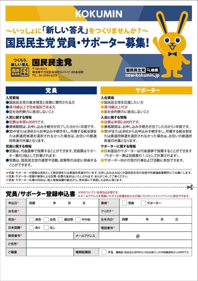 *党員・サポーター登録の解除による党費・会費の返却はいたしかねます。あらかじめ、ご了承ください。